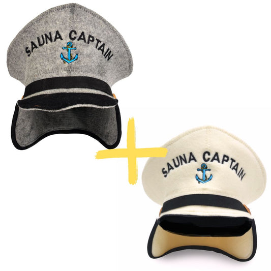 Sauna Hat's “Sauna Captain” white & grey 100% Wool, Set of 2
